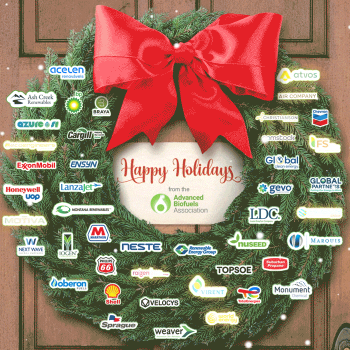 On behalf of the entire team at the Advanced Biofuels Association, we extend our warmest wishes for a joyful holiday season and a happy New Year!